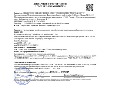 • 俄羅斯GOST防爆電氣增安型差動電流互感器證書