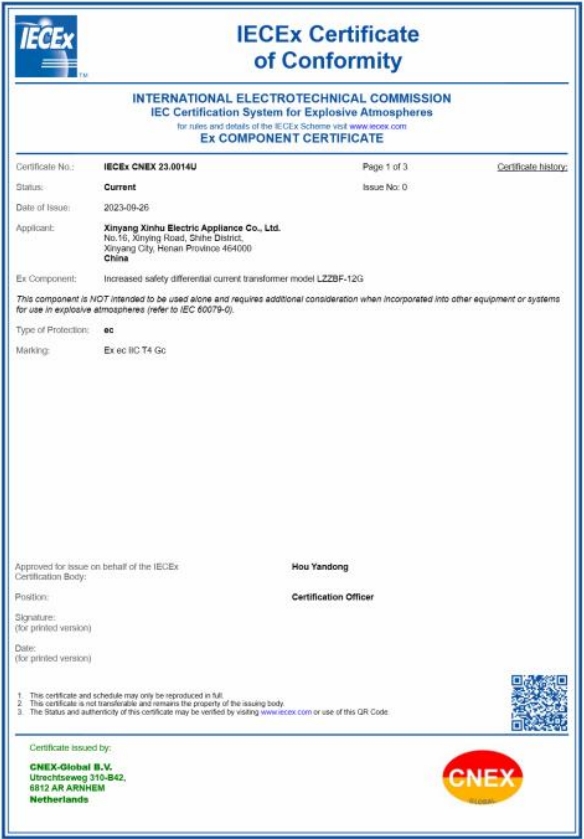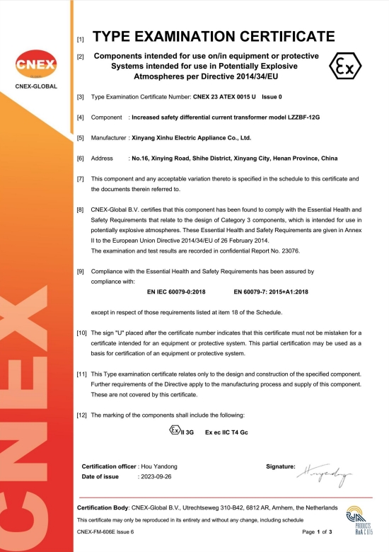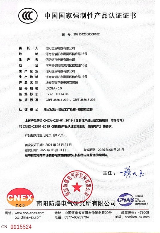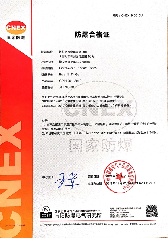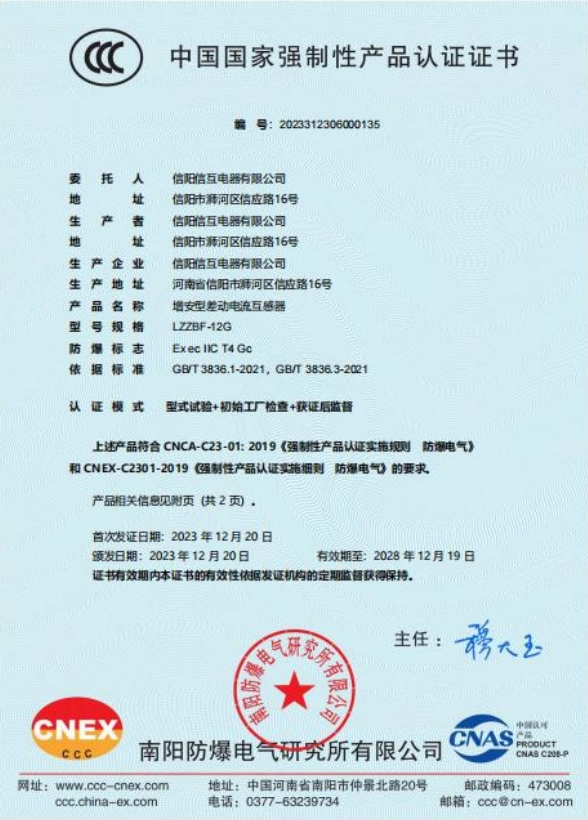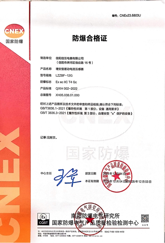 • 俄羅斯GOST防爆電氣增安型差動電流互感器證書