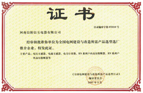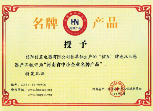 河南信陽信互電器有限公司(電力互感器制造廠)是機械、電力行業生產企業,“信互”牌互感器系列產品被評為“互感器”。曾擁有制造計量器具許可證、計量器具合格證書、防爆電氣設備合格證,企業被推薦為《全國城鄉建設與改造所需主要設備產品及生產企業》。是《變壓器》、《互感器》、《組合式互感器》國標導則宣貫的單位之一、輸變電協會互感器分會會員,報沈陽變壓器研究所備案的互感器生產單位。擁有“信互”牌注冊商標。